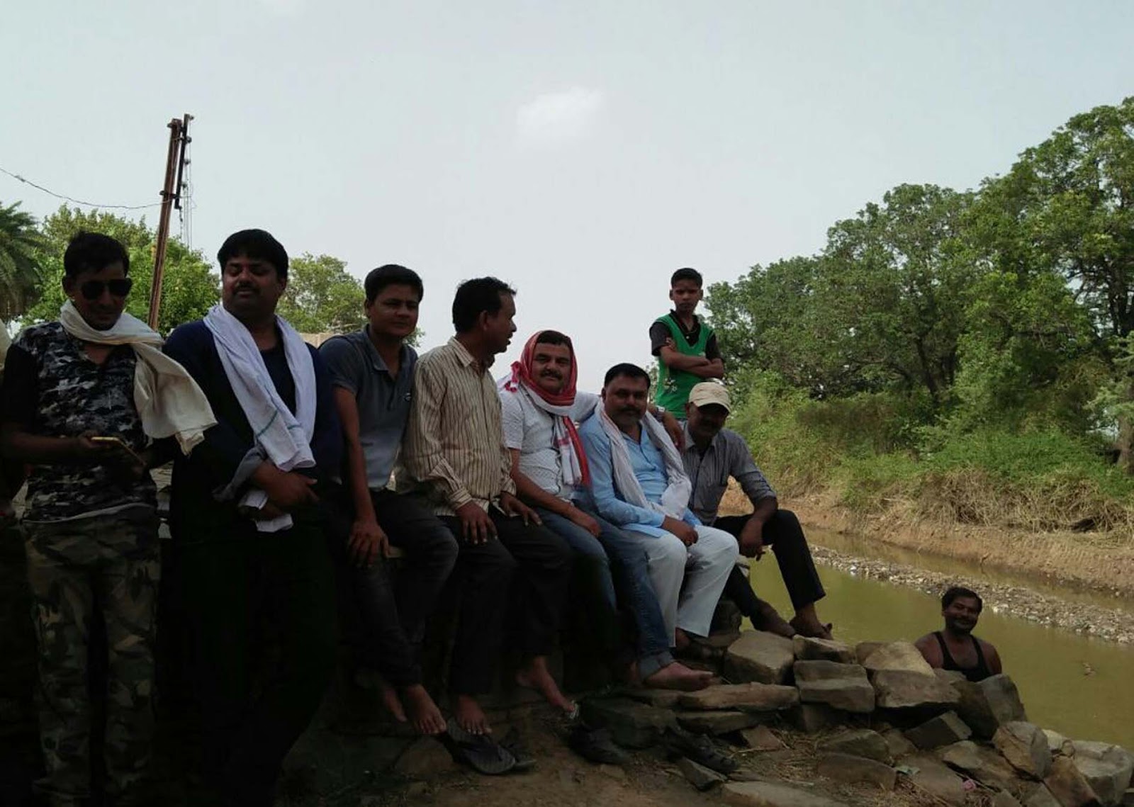 चल रहे सफाई अभियान का जायजा लेने नदी किनारे बैठी युवकों की टीम। |